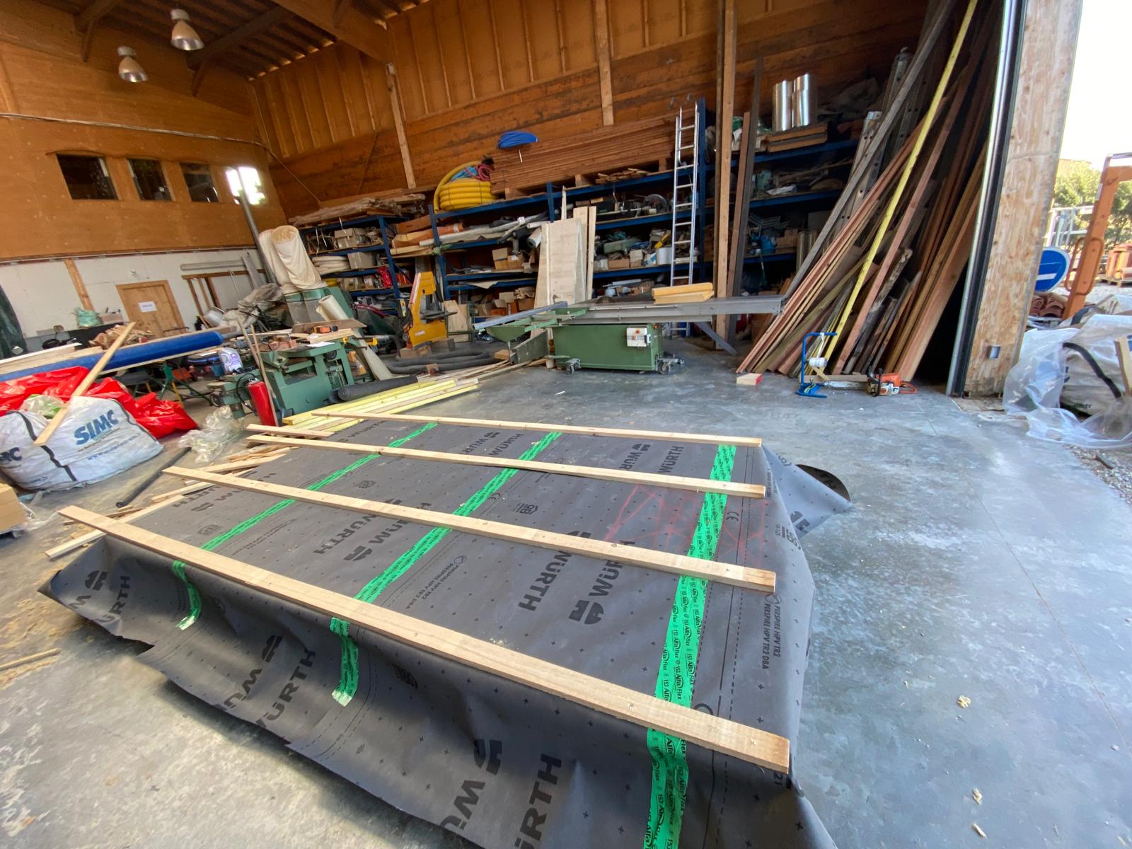 Réfection de la toiture avec des panneaux caisson en CLT et de l'isolation en fibre de bois