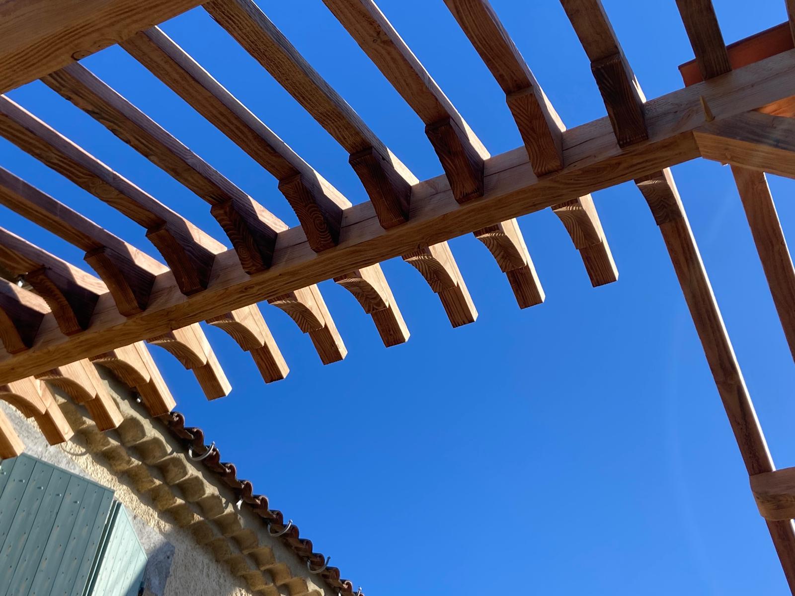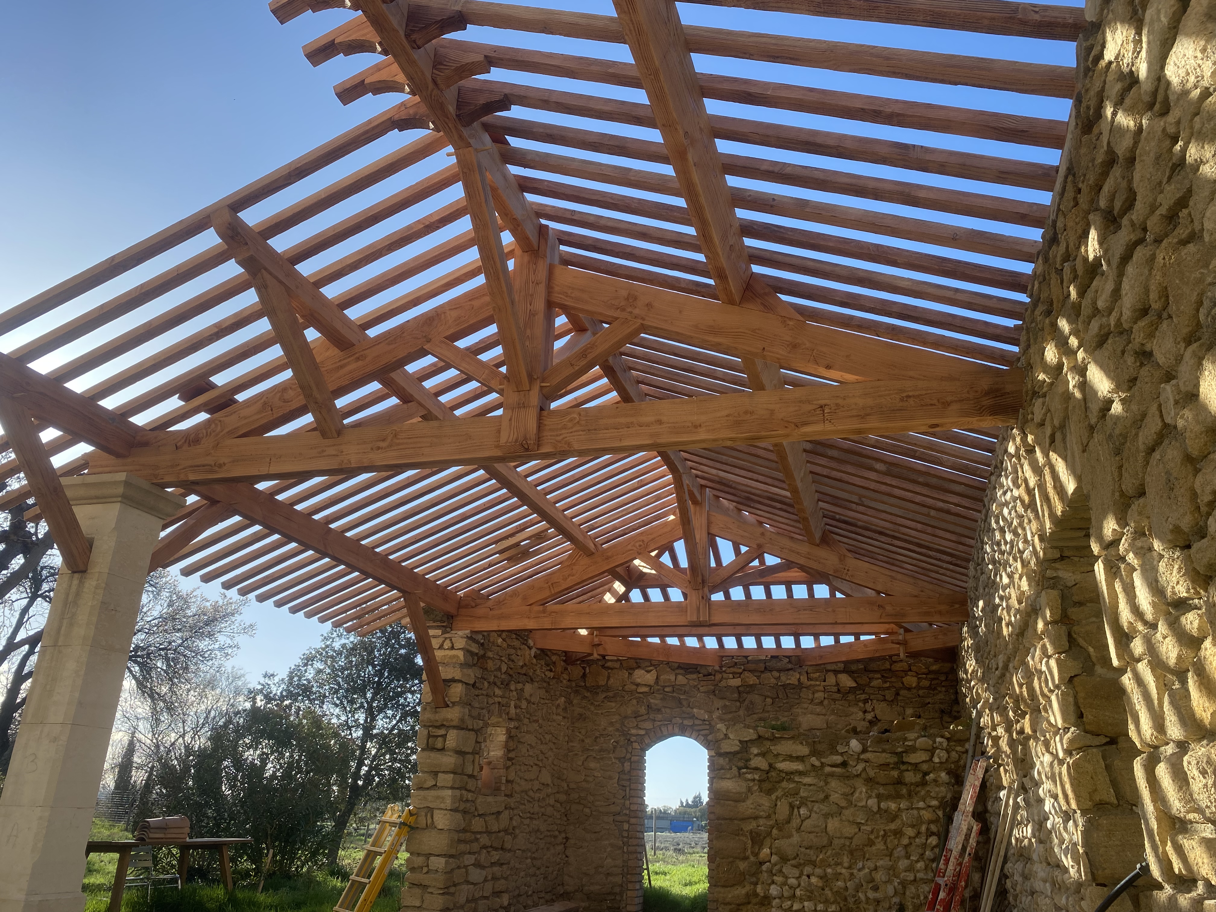 05/01/2026Fabrication d'une charpente en douglas sur une vielle bâtisse, tuiles canal neuves en courant et tuiles canal anciennes en couvert